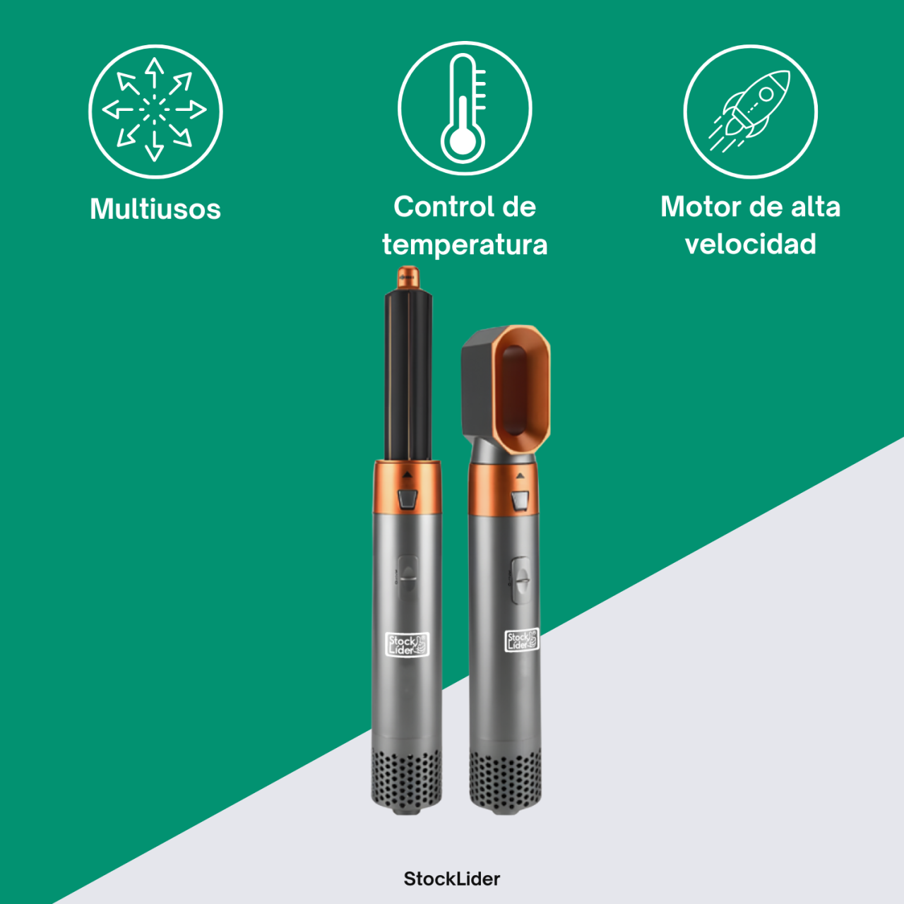 El Cepillo Secador 5 en 1 es la solución todo-en-uno para quienes buscan un look impecable sin esfuerzo. Con cinco accesorios intercambiables —secador, cepillo alisador, cepillo volumizador, rizador de 30 mm y cabezal rizador—, este set te permite secar, alisar, rizar y dar volumen, ¡todo con un solo aparato!
